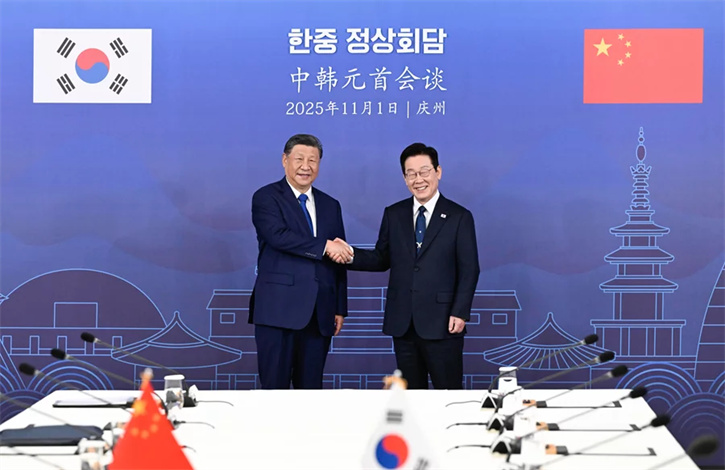 当地时间11月1日下午,韩国总统李在明同中国国家主席习近平在庆州博物馆举行会谈。来源人民网/江澜分享