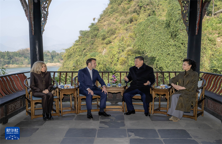 12月5日,国家主席习近平在四川省成都市都江堰同法国总统马克龙进行友好交流。来源新华网/江澜分享